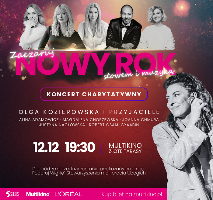 Bilety na koncert „Zaczarujmy nowy rok słowem i muzyką” 12 grudnia 2025 r. o godzinie 19:30 w Multikinie w Złotych Tarasach w Warszawie dostępne są na stronie.